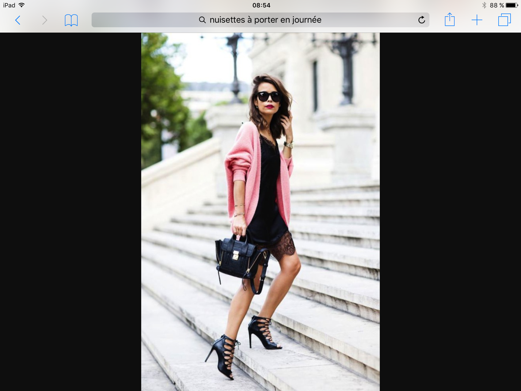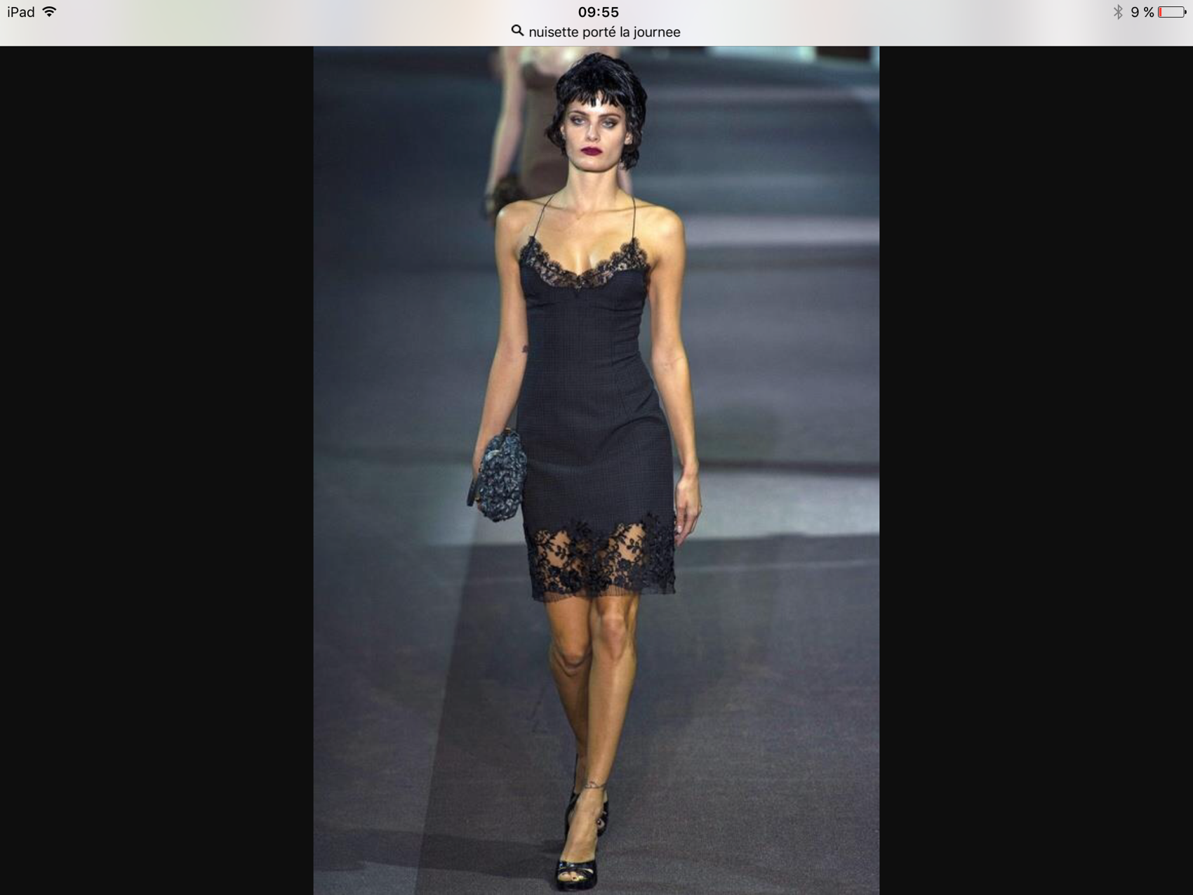 Autrement dit, la nuisette sort de son alcôve sombre et feutrée pour venir se pavaner en plein jour ! Terminée la petite nuisette négligemment enfilée avant de se coucher , la timide nuisette cachée sous l’oreiller , la prude nuisette en coton !