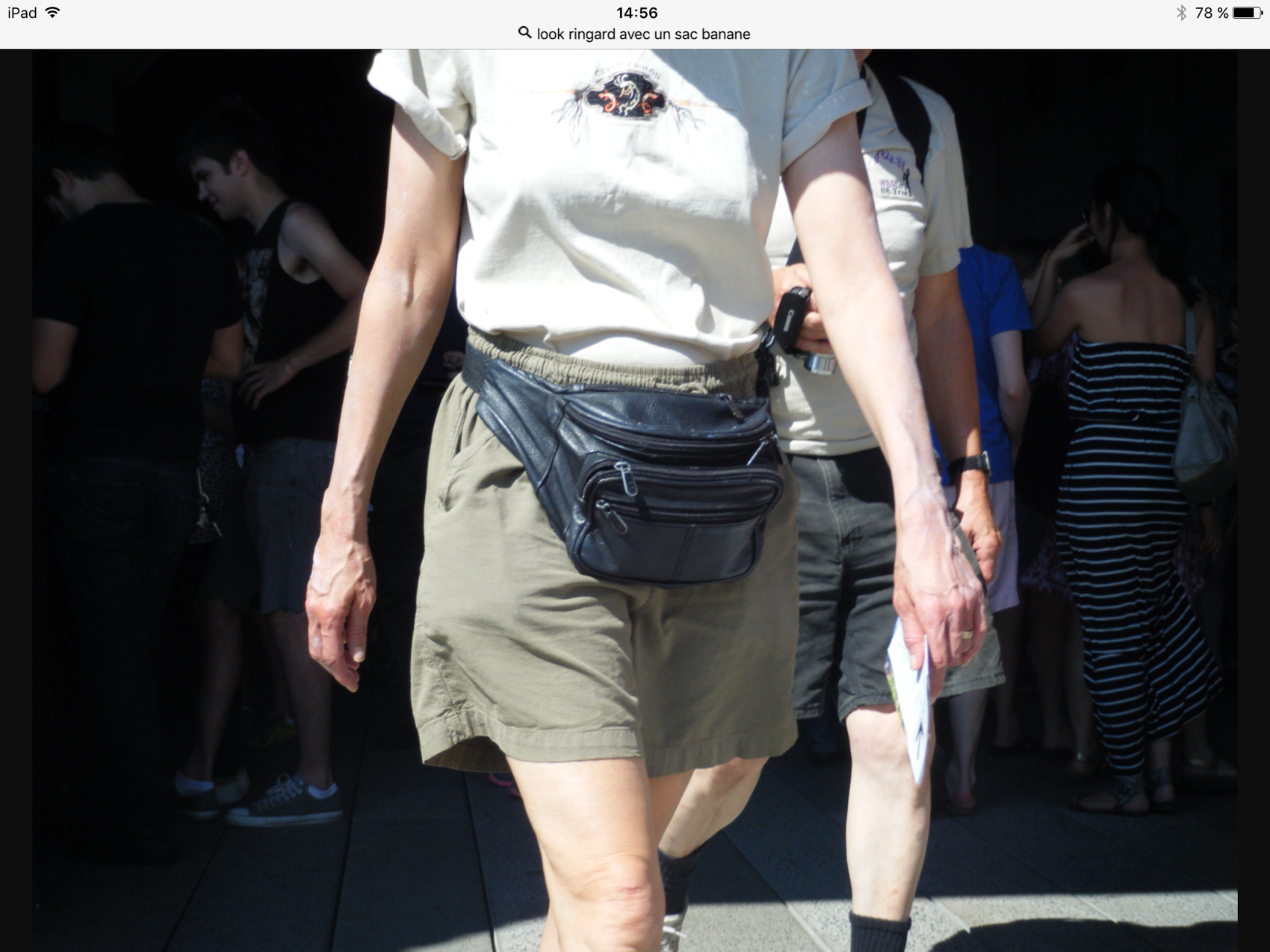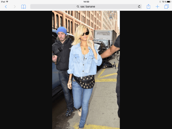 Loin des podiums , portée par Rihana qui incarne le chic à la française ( nan je déconne ! ) la banane n’en est que plus repoussante encore ! Vous remarquerez sur ce modèle les symboles argentés qui représentent des dollars : la banane quitte son domaine de prédilection qu’est la beauffitude pour aller dans celui de la vulgarité ….