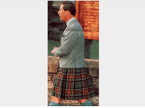 Vous noterez, en passant, que chez le Prince , Le veston est immuable, impassible, imprescriptible. En revanche, Charles nous fait étalage de ses kilts , Charles fait son coquet , Charles nous invite dans sa garde-kilts, bref….Charles nous allume ! Et si comme moi, les hommes en jupe ne vous laissent pas indifférentes , je ne vois qu’une issue : le tartantrisme !
