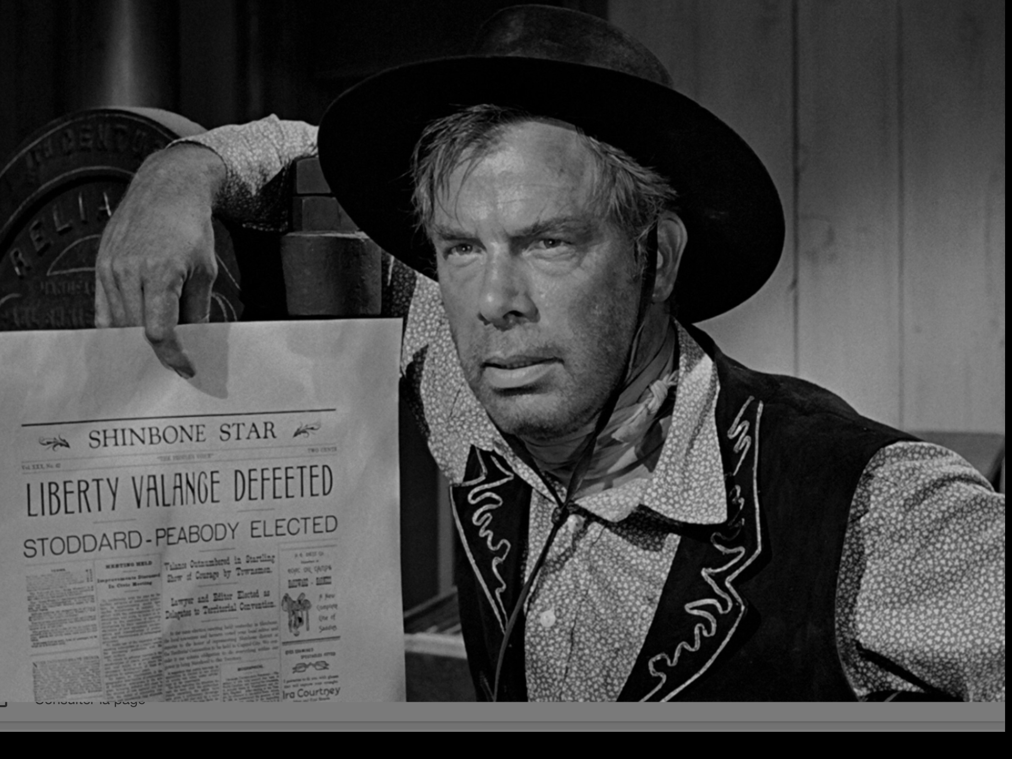 En revanche, montrez lui à l’occasion ce western culte de John Ford : » L’homme qui tua Liberty Valance » et lorsqu’apparaît Lee Marvin ( un monstre de virilité ! ) faites lui remarquer innocemment que la chemise qu’il porte est une chemise de fiotte ….
