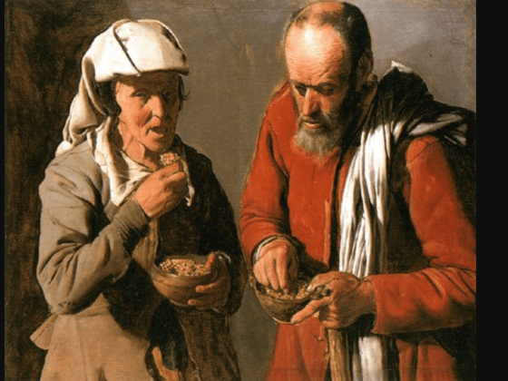 Le peintre Georges de la Tour, nous présente dans son illustre tableau des  » petits vieux au repas  » un couple de paysans dinant d’une maigre pitance , accablé par le paiement de la gabelle . Regardez ces visages soucieux aux sourcils froncés , sur le sujet masculin, la ride de la Gabelle est très visible .